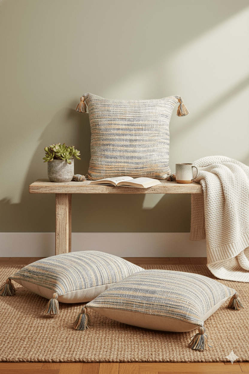 Cushion covers and throw pillows are decorative accents that add comfort, texture, and personality to your home. Cushion covers slip over existing cushions for a fresh look, while throw pillows are decorative additions to sofas, chairs, and beds. Available in various sizes (Shaped Cushion, Round Cushion, 12inchx12inch, 18inchx18inch, 20inchx20inch, 24inchx24inch and lumbar). They can be styled in multiple ways, such as layering, color blocking, or mixing patterns and textures.