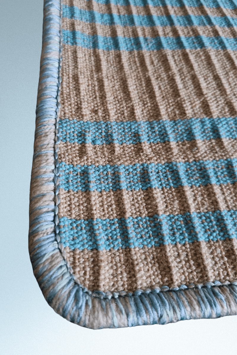 BLUE STRIPED JUTE FLOOR MAT
