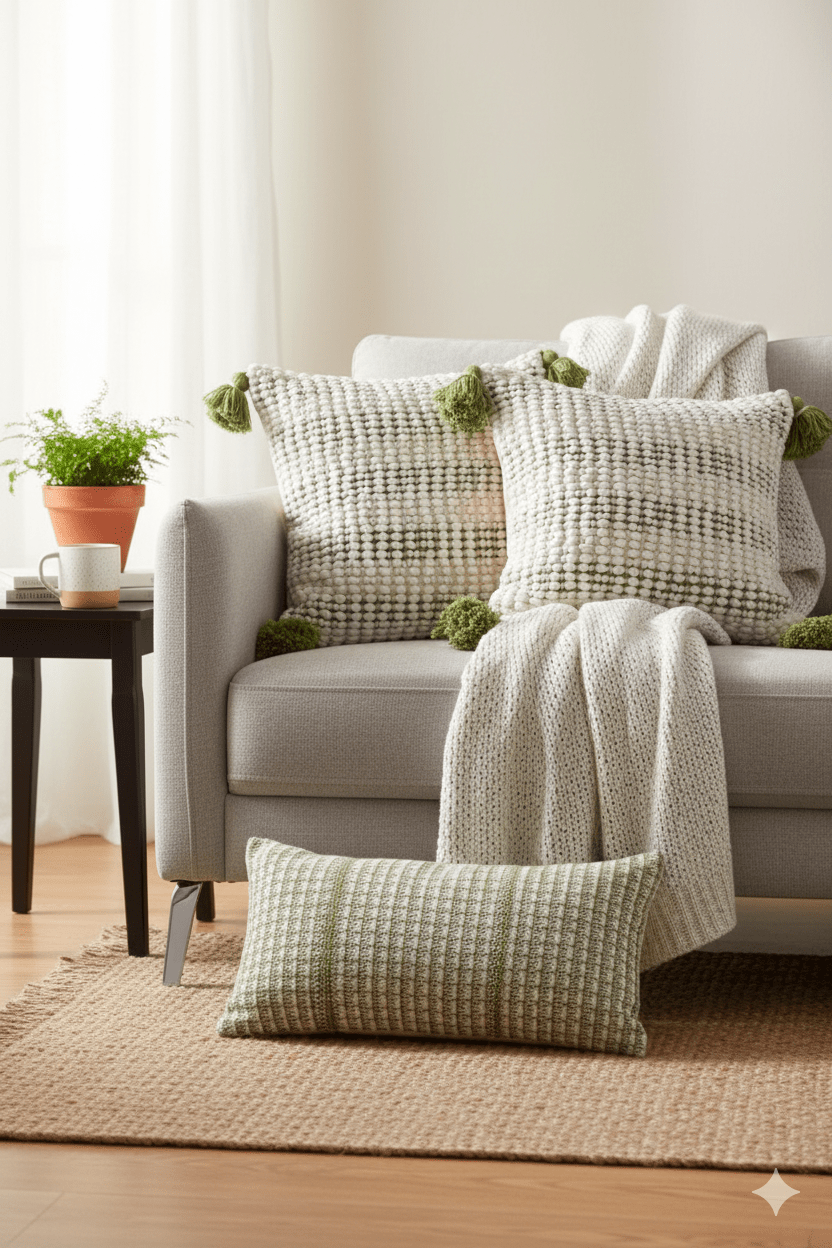 Cushion covers and throw pillows are decorative accents that add comfort, texture, and personality to your home. Cushion covers slip over existing cushions for a fresh look, while throw pillows are decorative additions to sofas, chairs, and beds. Available in various sizes (Shaped Cushion, Round Cushion, 12inchx12inch, 18inchx18inch, 20inchx20inch, 24inchx24inch and lumbar). They can be styled in multiple ways, such as layering, color blocking, or mixing patterns and textures.