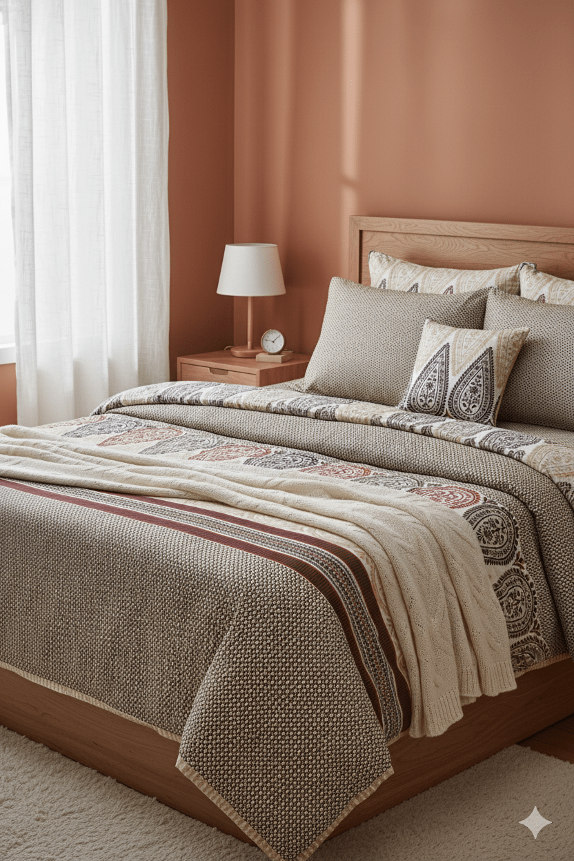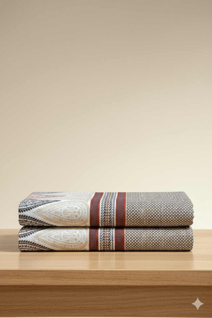 Bed sheets are fabric coverings designed to fit mattresses, providing a comfortable and hygienic sleeping surface. Available in various sizes, such as single (60in x 90in), double (90in x 90in), queen (100in x 100in), and king (108in x 108in). Bed sheets come in a wide range of materials, patterns, and colors. Lower thread counts (180-300) are often a good balance of softness and durability, and higher thread counts (300-500+) can be very soft and smooth. However, thread count is not the only factor; fabric type, weave, and yarn quality also significantly impact the final feel and quality of the bedsheet. To style your bed, consider layering bed sheets with throw blankets, comforters, or quilts to add texture and depth.