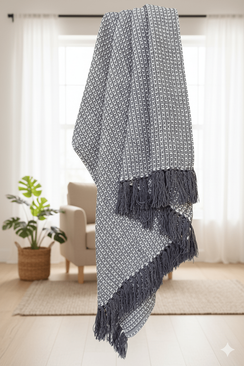 Features: Knitted, Printed, Warm, Tassels, Lightweight, Travel-friendly, Made in India