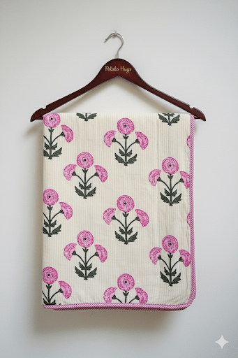 A blanket is a single layer of thick woven fabrics designed for warmth and comfort, perfect for snuggling, picnics, or as decorative throws.A comforter is a thick, quilted or fluffy bed covering with a decorative outer shell and a insulated filling. A quilt has three layers: a decorative top, a middle filling, and a back, stitched together in a pattern. Blankets, quilts, comforters, and dohars are popular bedding essentials that serve both functional and aesthetic purposes. Dohars are traditional Indian blankets or throws, often reversible, adding a pop of color and texture to beds, sofas, or chairs. Often available in various sizes and pattern choose as per your need of warmth and choice of you style.