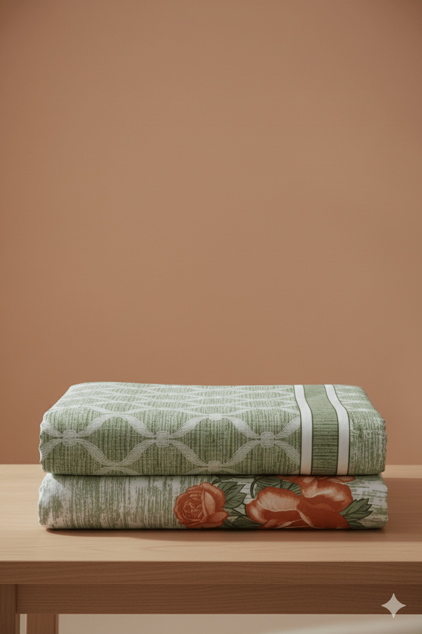 Bed sheets are fabric coverings designed to fit mattresses, providing a comfortable and hygienic sleeping surface. Available in various sizes, such as single (60in x 90in), double (90in x 90in), queen (100in x 100in), and king (108in x 108in). Bed sheets come in a wide range of materials, patterns, and colors. Lower thread counts (180-300) are often a good balance of softness and durability, and higher thread counts (300-500+) can be very soft and smooth. However, thread count is not the only factor; fabric type, weave, and yarn quality also significantly impact the final feel and quality of the bedsheet. To style your bed, consider layering bed sheets with throw blankets, comforters, or quilts to add texture and depth.