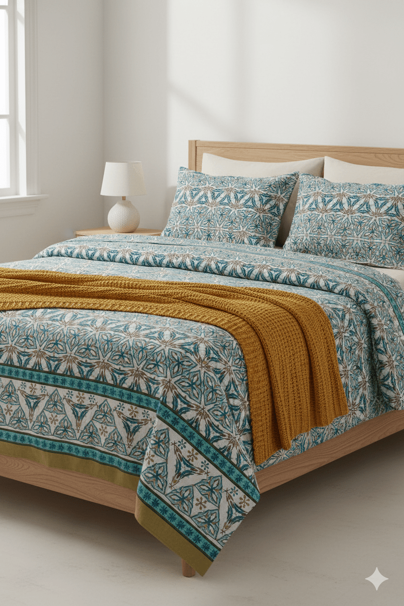 Bed sheets are fabric coverings designed to fit mattresses, providing a comfortable and hygienic sleeping surface. Available in various sizes, such as single (60in x 90in), double (90in x 90in), queen (100in x 100in), and king (108in x 108in). Bed sheets come in a wide range of materials, patterns, and colors. Lower thread counts (180-300) are often a good balance of softness and durability, and higher thread counts (300-500+) can be very soft and smooth. However, thread count is not the only factor; fabric type, weave, and yarn quality also significantly impact the final feel and quality of the bedsheet. To style your bed, consider layering bed sheets with throw blankets, comforters, or quilts to add texture and depth.