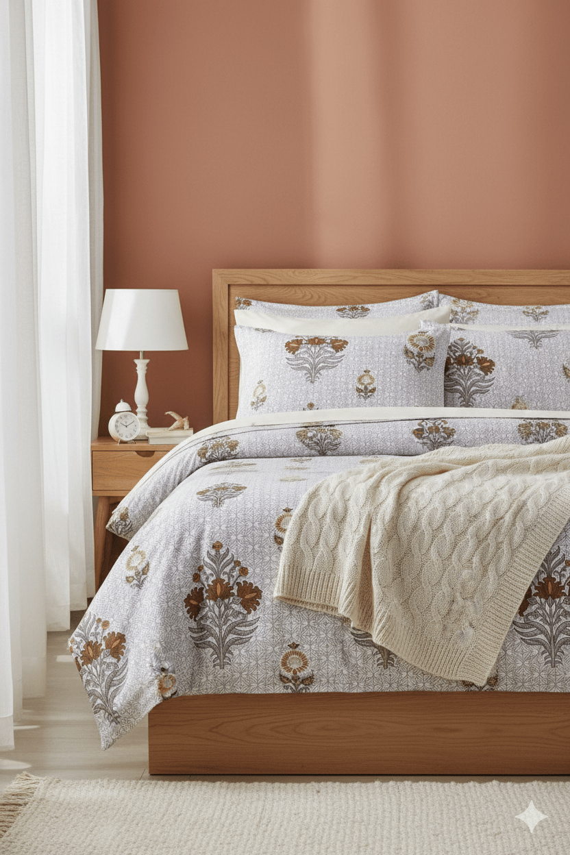 Bed sheets are fabric coverings designed to fit mattresses, providing a comfortable and hygienic sleeping surface. Available in various sizes, such as single (60in x 90in), double (90in x 90in), queen (100in x 100in), and king (108in x 108in). Bed sheets come in a wide range of materials, patterns, and colors. Lower thread counts (180-300) are often a good balance of softness and durability, and higher thread counts (300-500+) can be very soft and smooth. However, thread count is not the only factor; fabric type, weave, and yarn quality also significantly impact the final feel and quality of the bedsheet. To style your bed, consider layering bed sheets with throw blankets, comforters, or quilts to add texture and depth.