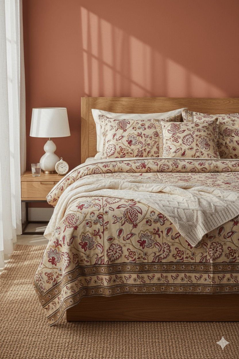 Bed sheets are fabric coverings designed to fit mattresses, providing a comfortable and hygienic sleeping surface. Available in various sizes, such as single (60in x 90in), double (90in x 90in), queen (100in x 100in), and king (108in x 108in). Bed sheets come in a wide range of materials, patterns, and colors. Lower thread counts (180-300) are often a good balance of softness and durability, and higher thread counts (300-500+) can be very soft and smooth. However, thread count is not the only factor; fabric type, weave, and yarn quality also significantly impact the final feel and quality of the bedsheet. To style your bed, consider layering bed sheets with throw blankets, comforters, or quilts to add texture and depth.