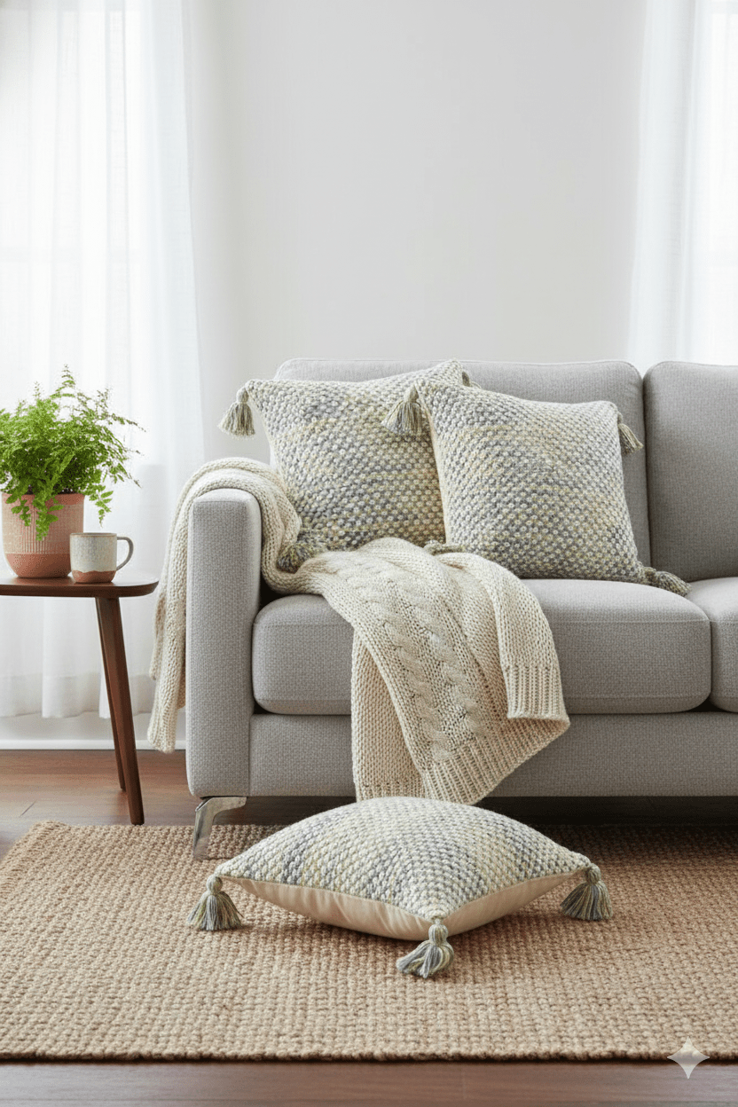 Cushion covers and throw pillows are decorative accents that add comfort, texture, and personality to your home. Cushion covers slip over existing cushions for a fresh look, while throw pillows are decorative additions to sofas, chairs, and beds. Available in various sizes (Shaped Cushion, Round Cushion, 12inchx12inch, 18inchx18inch, 20inchx20inch, 24inchx24inch and lumbar). They can be styled in multiple ways, such as layering, color blocking, or mixing patterns and textures.
