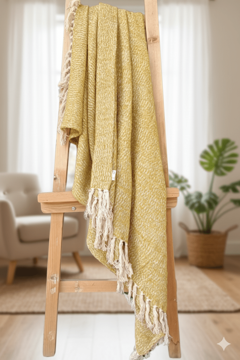 Features: Knitted, Printed, Warm, Tassels, Lightweight, Travel-friendly, Made in India