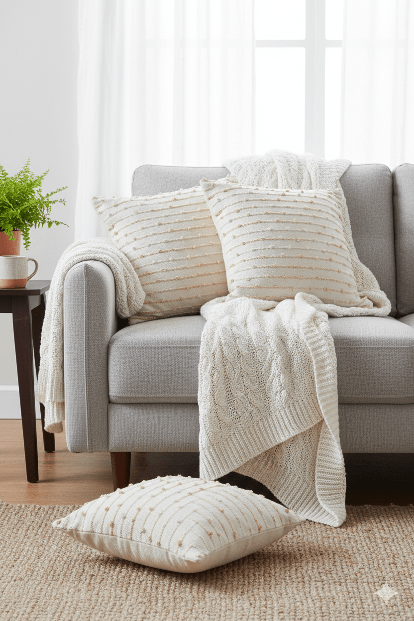 Cushion covers and throw pillows are decorative accents that add comfort, texture, and personality to your home. Cushion covers slip over existing cushions for a fresh look, while throw pillows are decorative additions to sofas, chairs, and beds. Available in various sizes (Shaped Cushion, Round Cushion, 12inchx12inch, 18inchx18inch, 20inchx20inch, 24inchx24inch and lumbar). They can be styled in multiple ways, such as layering, color blocking, or mixing patterns and textures.