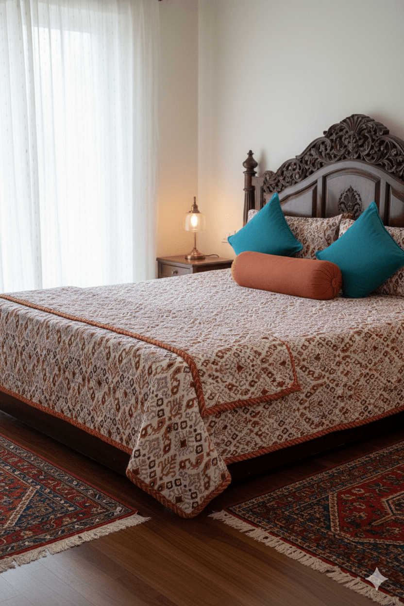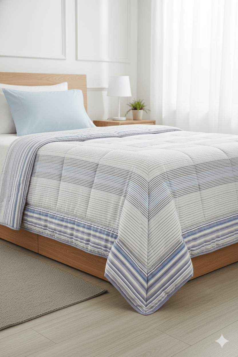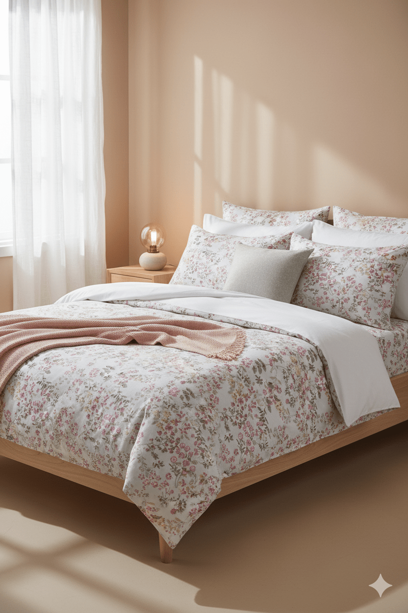 Bed sheets are fabric coverings designed to fit mattresses, providing a comfortable and hygienic sleeping surface. Available in various sizes, such as single (60in x 90in), double (90in x 90in), queen (100in x 100in), and king (108in x 108in). Bed sheets come in a wide range of materials, patterns, and colors. Lower thread counts (180-300) are often a good balance of softness and durability, and higher thread counts (300-500+) can be very soft and smooth. However, thread count is not the only factor; fabric type, weave, and yarn quality also significantly impact the final feel and quality of the bedsheet. To style your bed, consider layering bed sheets with throw blankets, comforters, or quilts to add texture and depth.
