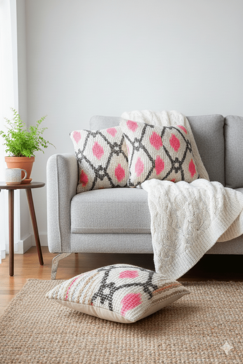 Cushion covers and throw pillows are decorative accents that add comfort, texture, and personality to your home. Cushion covers slip over existing cushions for a fresh look, while throw pillows are decorative additions to sofas, chairs, and beds. Available in various sizes (Shaped Cushion, Round Cushion, 12inchx12inch, 18inchx18inch, 20inchx20inch, 24inchx24inch and lumbar). They can be styled in multiple ways, such as layering, color blocking, or mixing patterns and textures.
