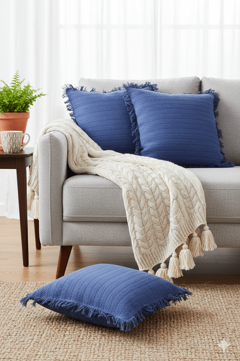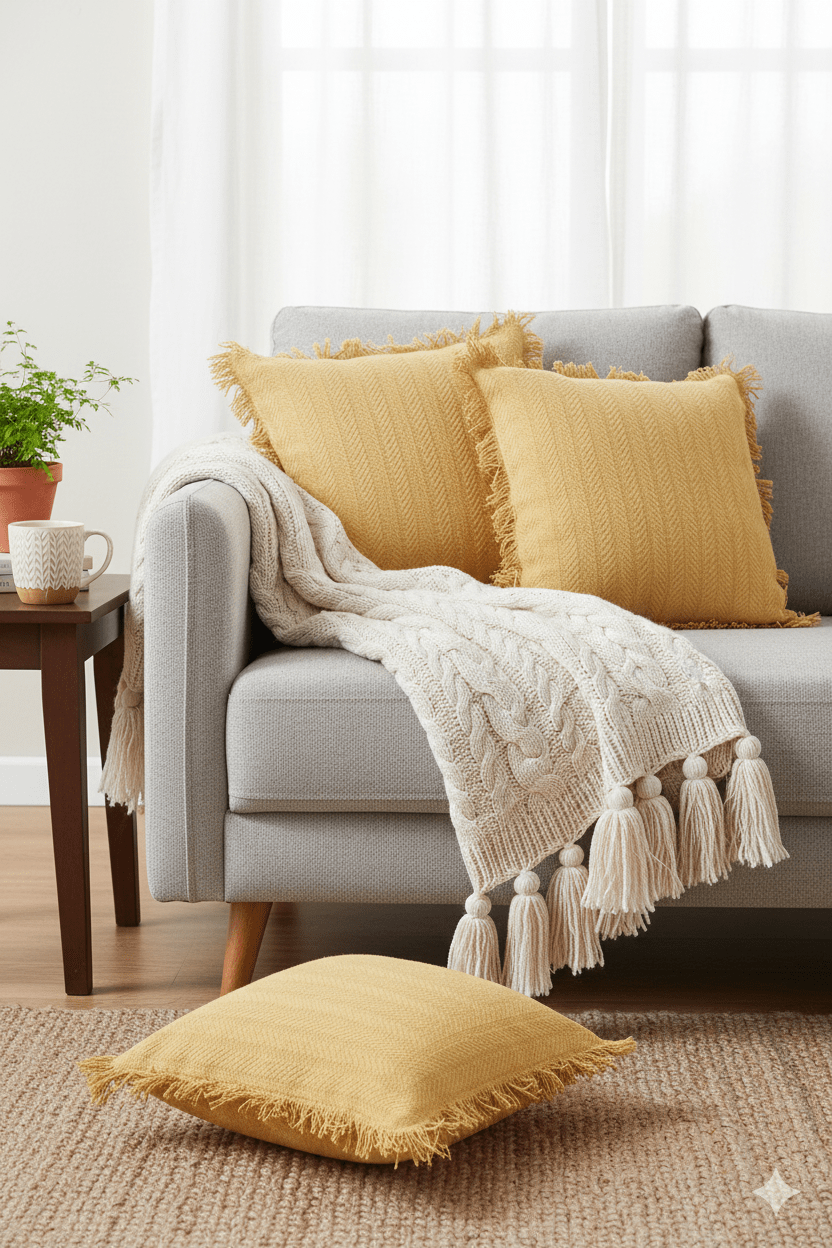 Cushion covers and throw pillows are decorative accents that add comfort, texture, and personality to your home. Cushion covers slip over existing cushions for a fresh look, while throw pillows are decorative additions to sofas, chairs, and beds. Available in various sizes (Shaped Cushion, Round Cushion, 12inchx12inch, 18inchx18inch, 20inchx20inch, 24inchx24inch and lumbar). They can be styled in multiple ways, such as layering, color blocking, or mixing patterns and textures.