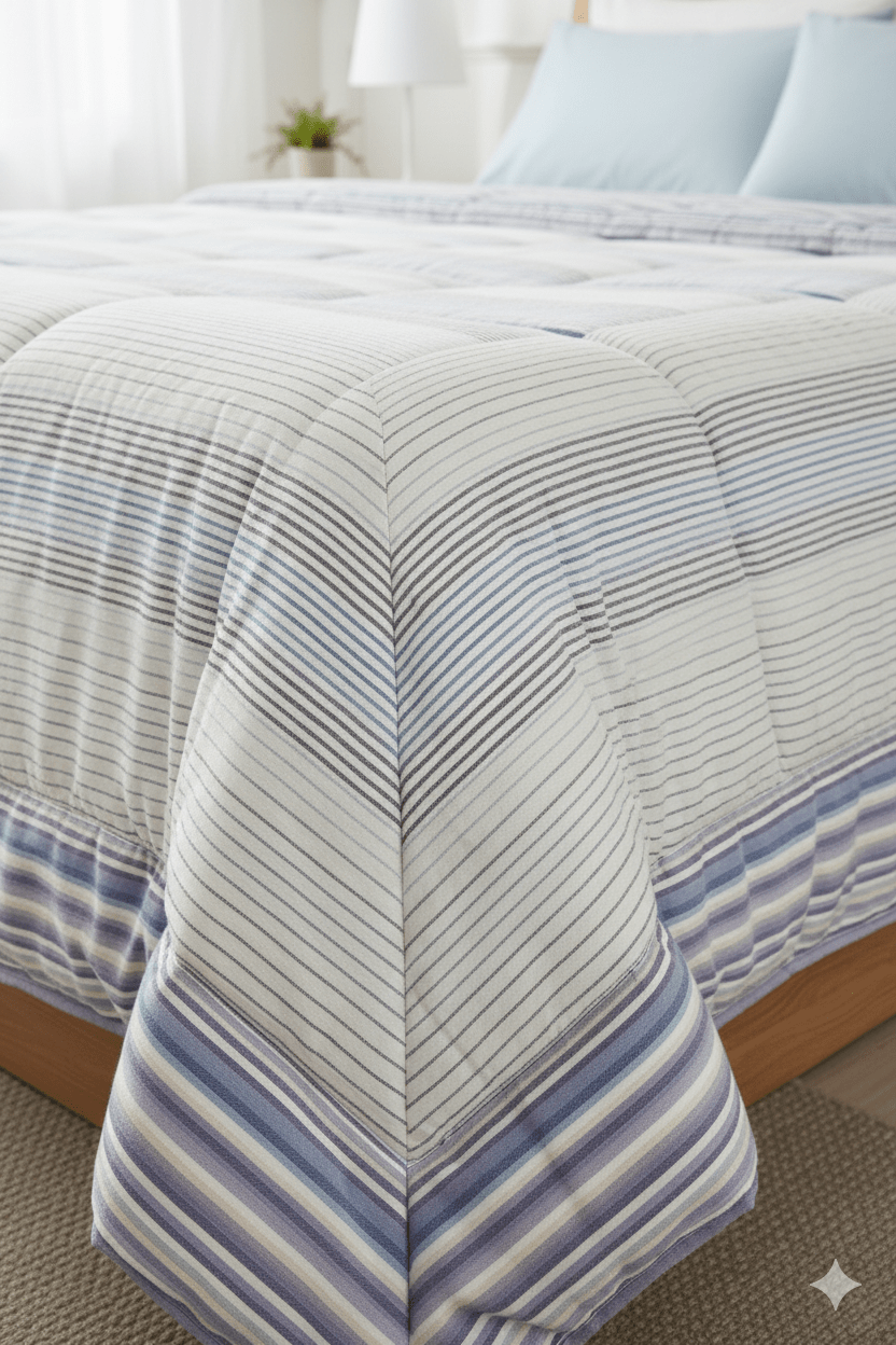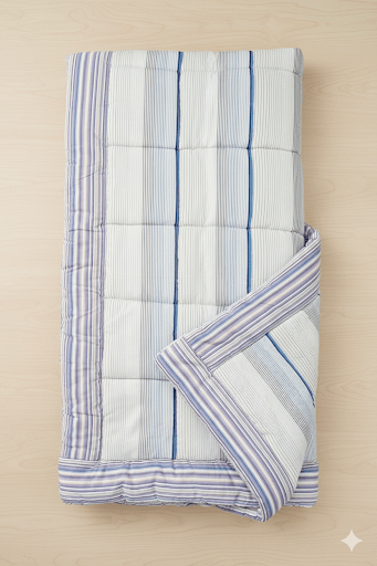 A blanket is a single layer of thick woven fabrics designed for warmth and comfort, perfect for snuggling, picnics, or as decorative throws.A comforter is a thick, quilted or fluffy bed covering with a decorative outer shell and a insulated filling. A quilt has three layers: a decorative top, a middle filling, and a back, stitched together in a pattern. Blankets, quilts, comforters, and dohars are popular bedding essentials that serve both functional and aesthetic purposes. Dohars are traditional Indian blankets or throws, often reversible, adding a pop of color and texture to beds, sofas, or chairs. Often available in various sizes and pattern choose as per your need of warmth and choice of you style.