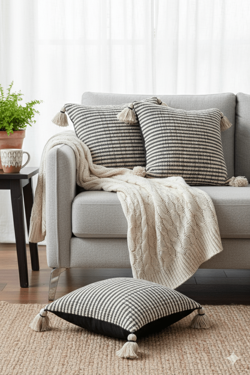 Cushion covers and throw pillows are decorative accents that add comfort, texture, and personality to your home. Cushion covers slip over existing cushions for a fresh look, while throw pillows are decorative additions to sofas, chairs, and beds. Available in various sizes (Shaped Cushion, Round Cushion, 12inchx12inch, 18inchx18inch, 20inchx20inch, 24inchx24inch and lumbar). They can be styled in multiple ways, such as layering, color blocking, or mixing patterns and textures.