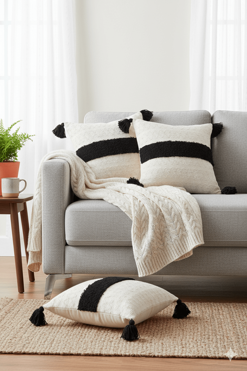 Cushion covers and throw pillows are decorative accents that add comfort, texture, and personality to your home. Cushion covers slip over existing cushions for a fresh look, while throw pillows are decorative additions to sofas, chairs, and beds. Available in various sizes (Shaped Cushion, Round Cushion, 12inchx12inch, 18inchx18inch, 20inchx20inch, 24inchx24inch and lumbar). They can be styled in multiple ways, such as layering, color blocking, or mixing patterns and textures.