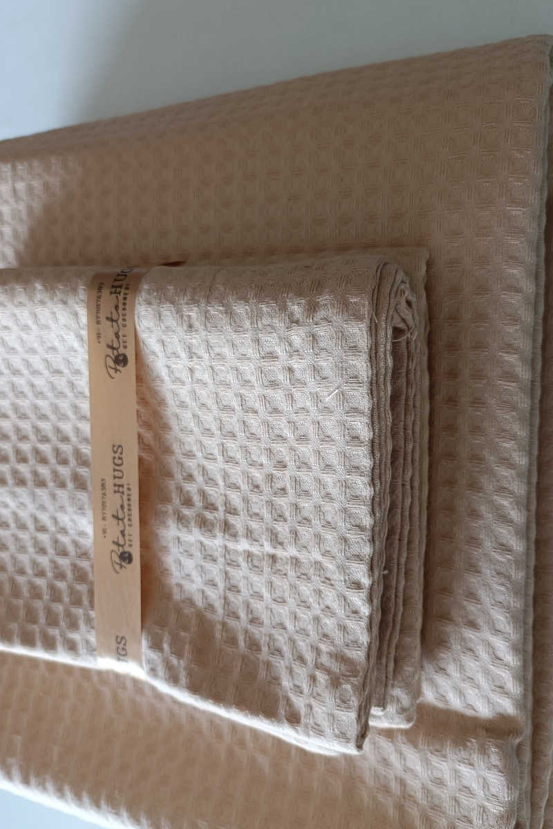 Features: Waffle, Embossed, Solid, Cotton, Made in India