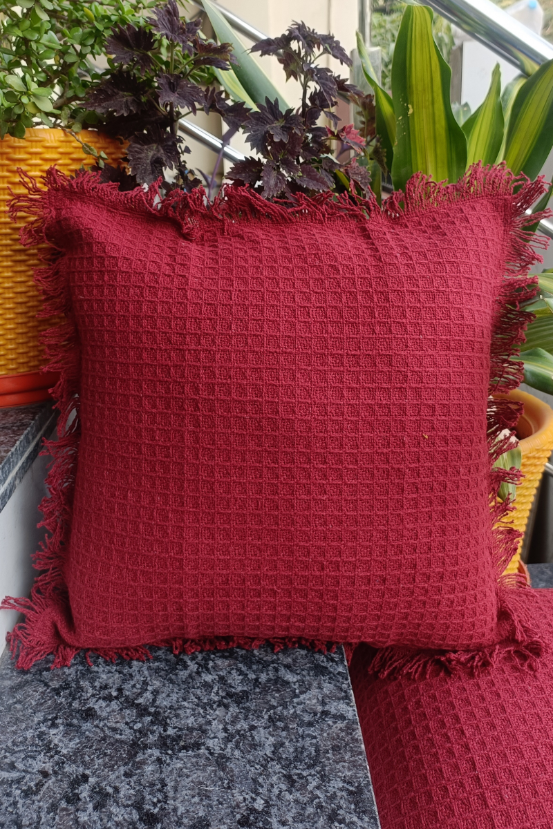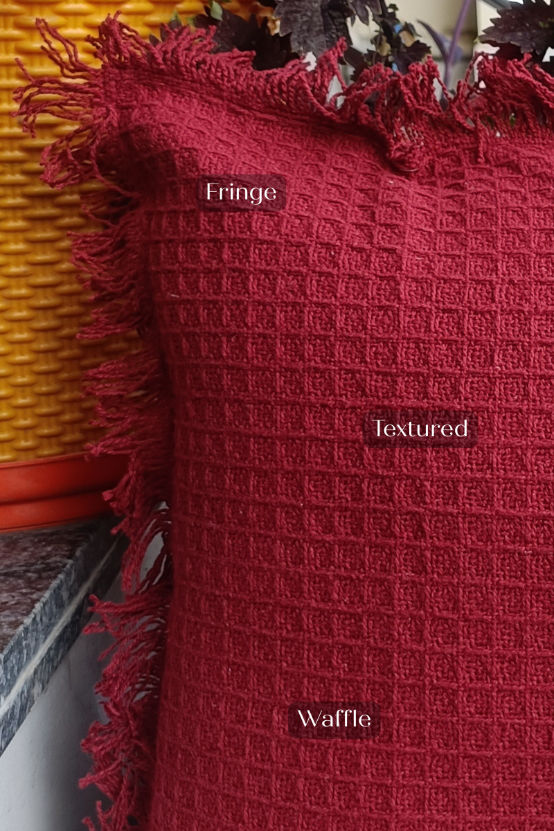 WAFFLE FRINGE EDGE CUSHION COVER, SET OF 2