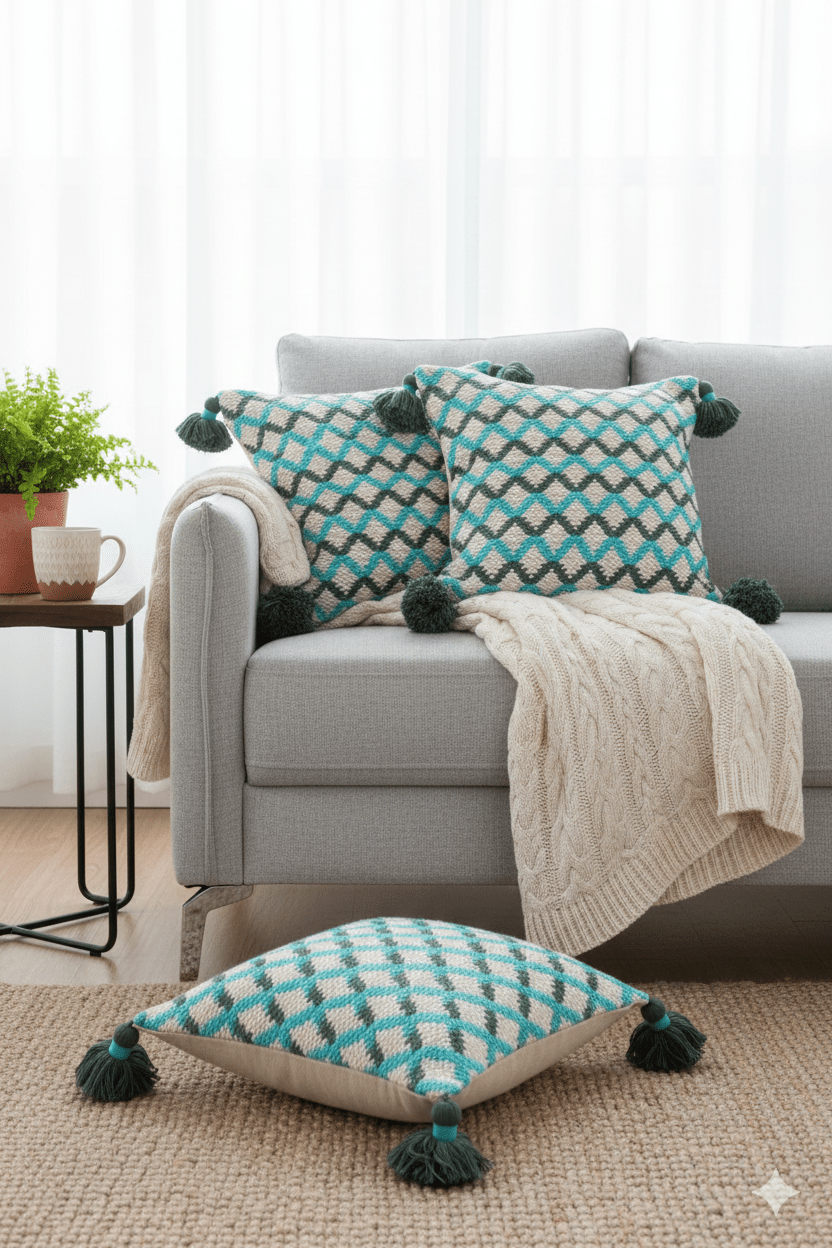 Cushion covers and throw pillows are decorative accents that add comfort, texture, and personality to your home. Cushion covers slip over existing cushions for a fresh look, while throw pillows are decorative additions to sofas, chairs, and beds. Available in various sizes (Shaped Cushion, Round Cushion, 12inchx12inch, 18inchx18inch, 20inchx20inch, 24inchx24inch and lumbar). They can be styled in multiple ways, such as layering, color blocking, or mixing patterns and textures.